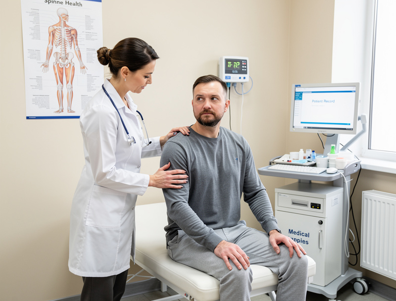 Далее следует осмотр: проверка амплитуды движений позвоночника, оценка мышечного тонуса. Врач объяснит план лечения и обсудит противопоказания: